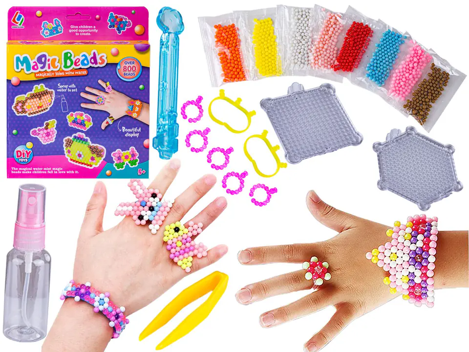 Water beads are colorful balls that can be freely combined with each other, creating new shapes, characters, figures or objects. Beads increase their adhesion with a little water.
