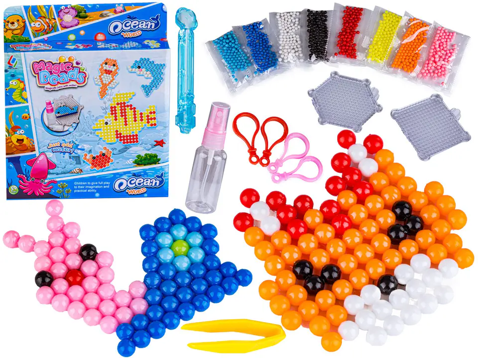 Water beads are colorful balls that can be freely combined with each other, creating new shapes, characters, figures or objects. Beads increase their adhesion with a little water.
