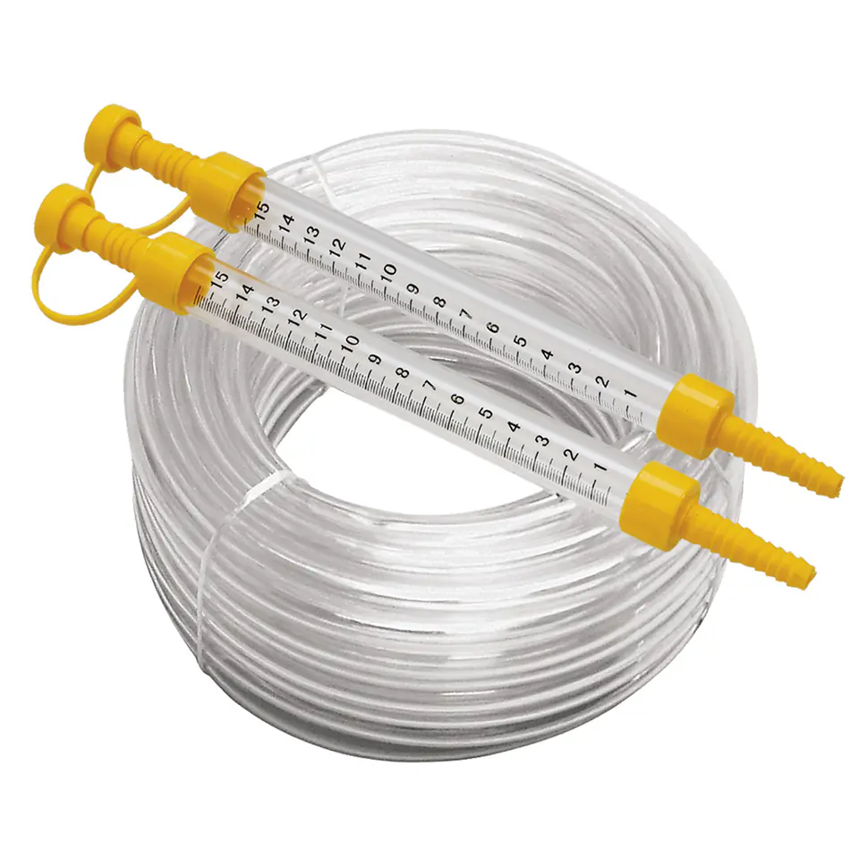 TOPEX water level (ref. no. 29C872) with a 20 m long hose. It is used in construction and finishing works. Made of PVC. It has two vials with a millimeter scale and rubber stoppers. The TOPEX brand is addressed to DIY enthusiasts.