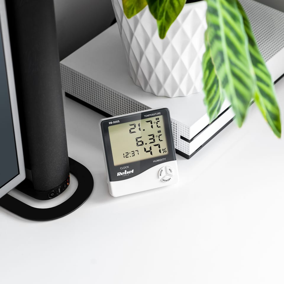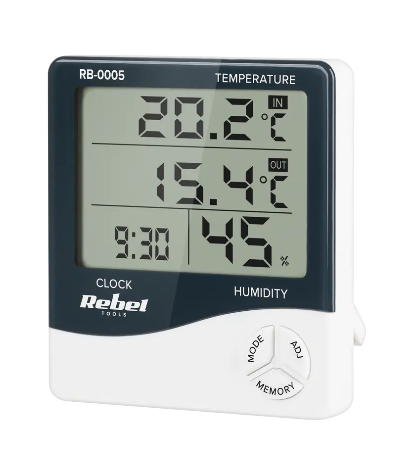 The Rebel Tools RB-0005 home weather station has also been equipped with additional functions. The device has a calendar and a clock with the ability to set an alarm, which will allow you to replace the traditional alarm clock. The big advantage of the station is that it is wireless, so you can easily set them anywhere.