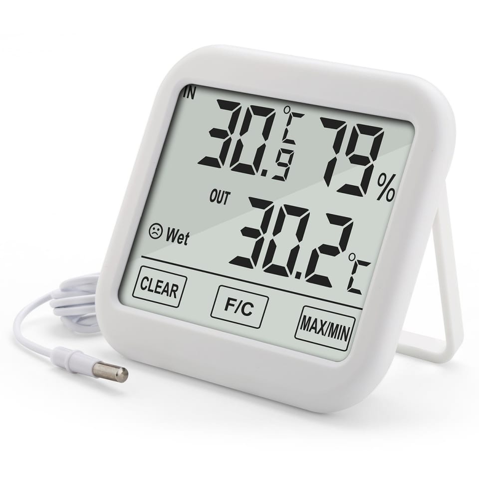 Wysokiej jakości urządzenie służące do kontroli temperatury wewnętrznej i zewnętrznej oraz wilgotności wewnątrz pomieszczeń.