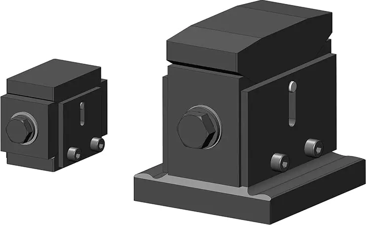 Application: for clamping heavy cast or forged parts on large machine tools. In addition, it is possible to put a wedge support on "heavy screw supports". For this, a cylindrical mandrel DIN 6325 (12 x 30 mm) is required.