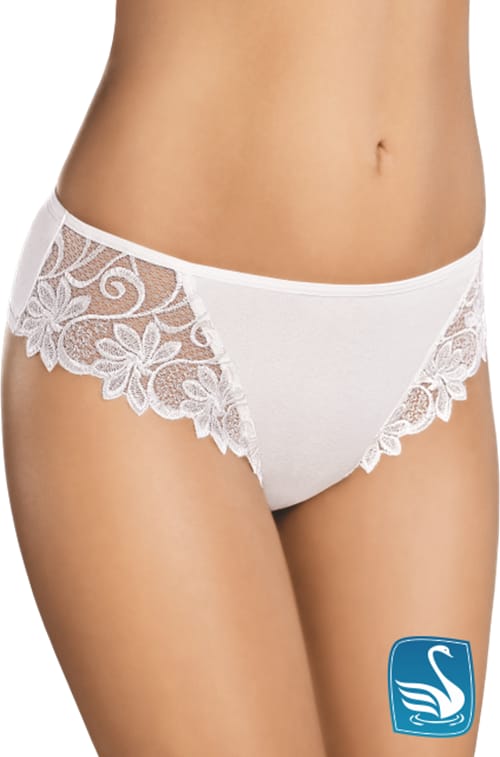 Sexy thongs that surprise with contrasts. Front smooth, cotton, lace sides. Back - vice versa: smooth on the sides and temptingly translucent in the middle of the buttocks. You haven't had anything like that yet... Composition: 95% cotton, 5% elastane.