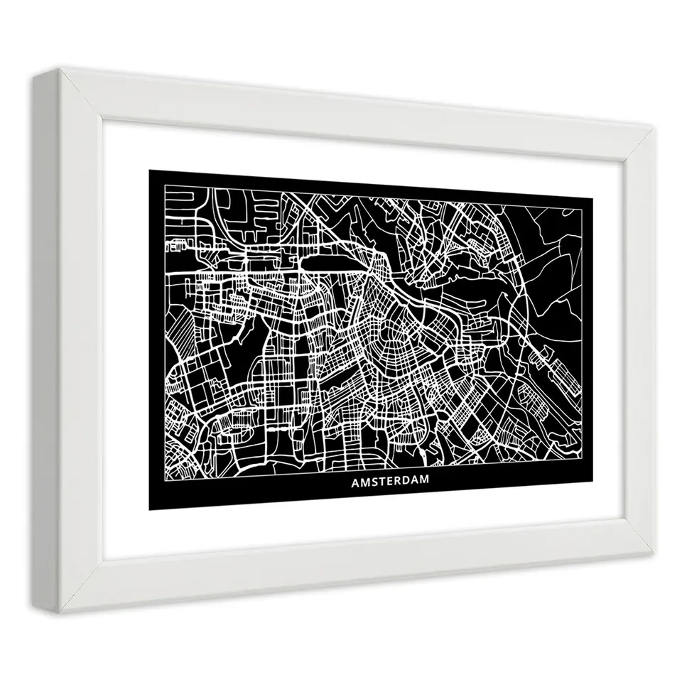 White frame poster, City plan Amsterdam Size 45x30