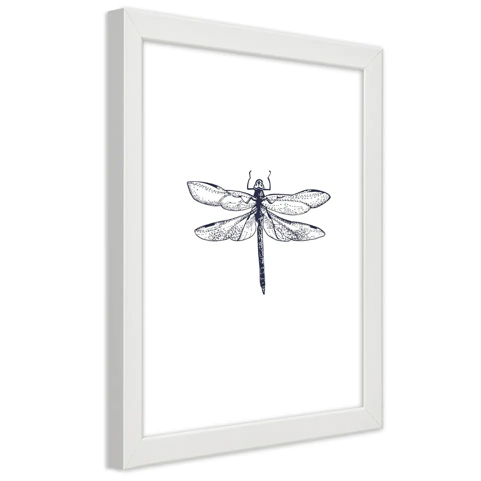 White frame poster, Dragonfly drawn Size 40x60