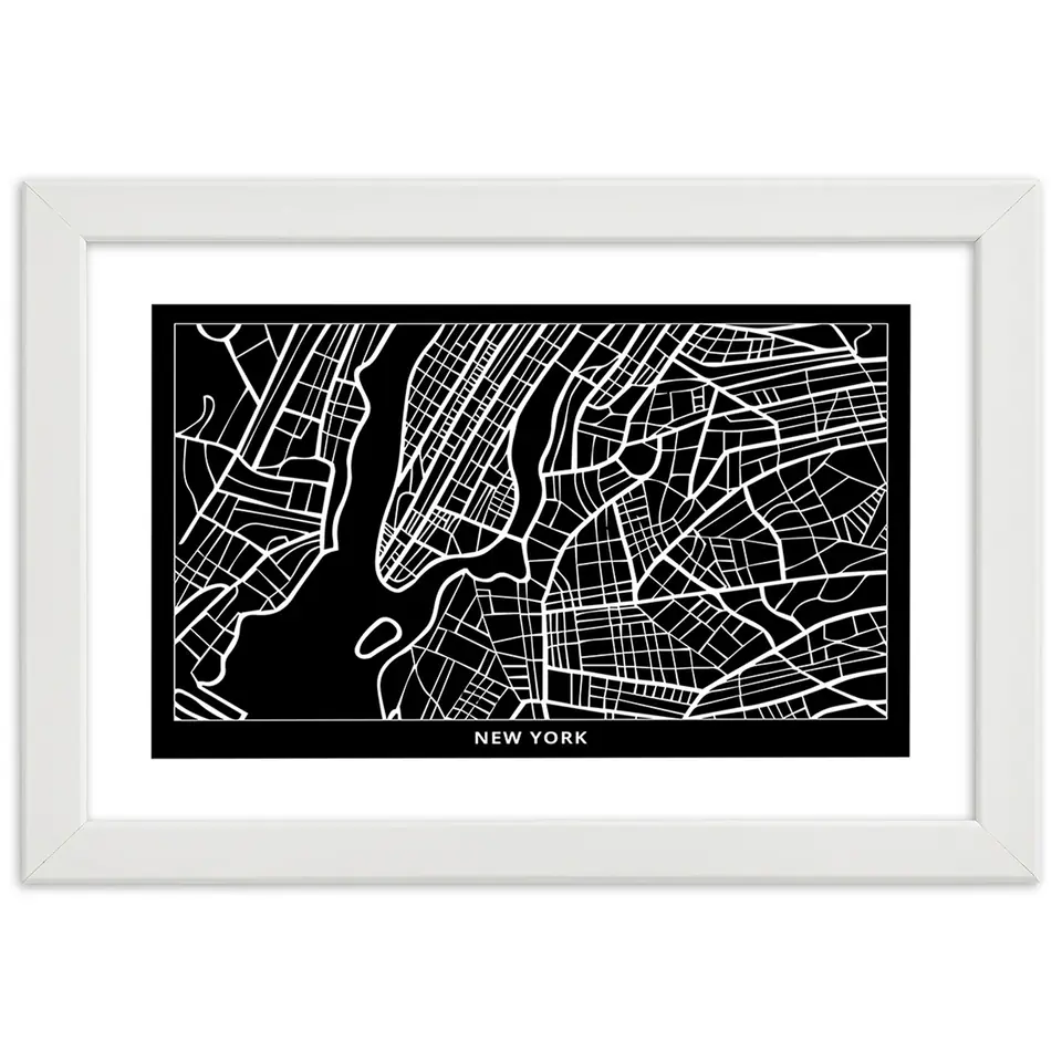 White frame poster, New York City Plan Size 45x30