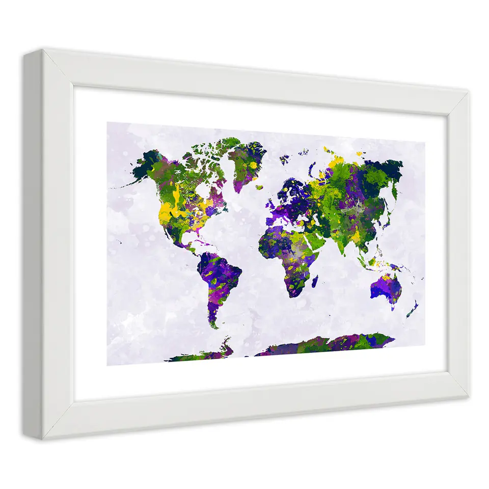 White frame poster, Painted world map Size 45x30