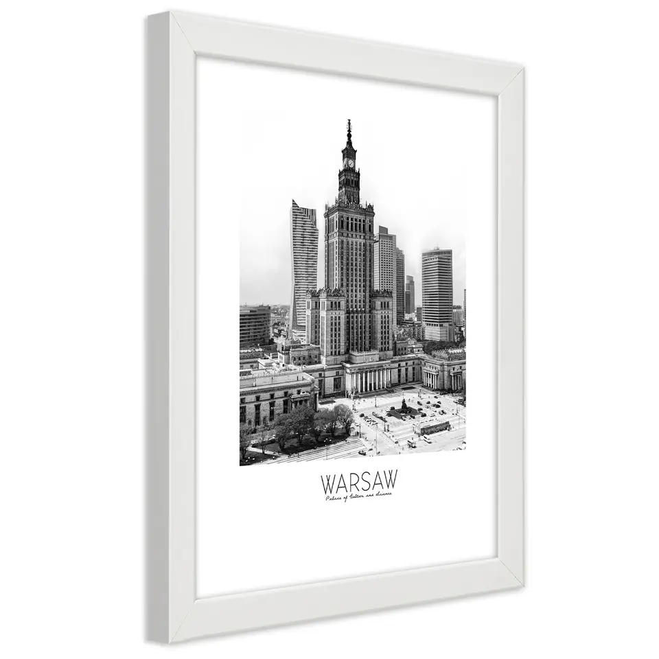 White frame poster, Palace of Culture in Warsaw Size 70x100