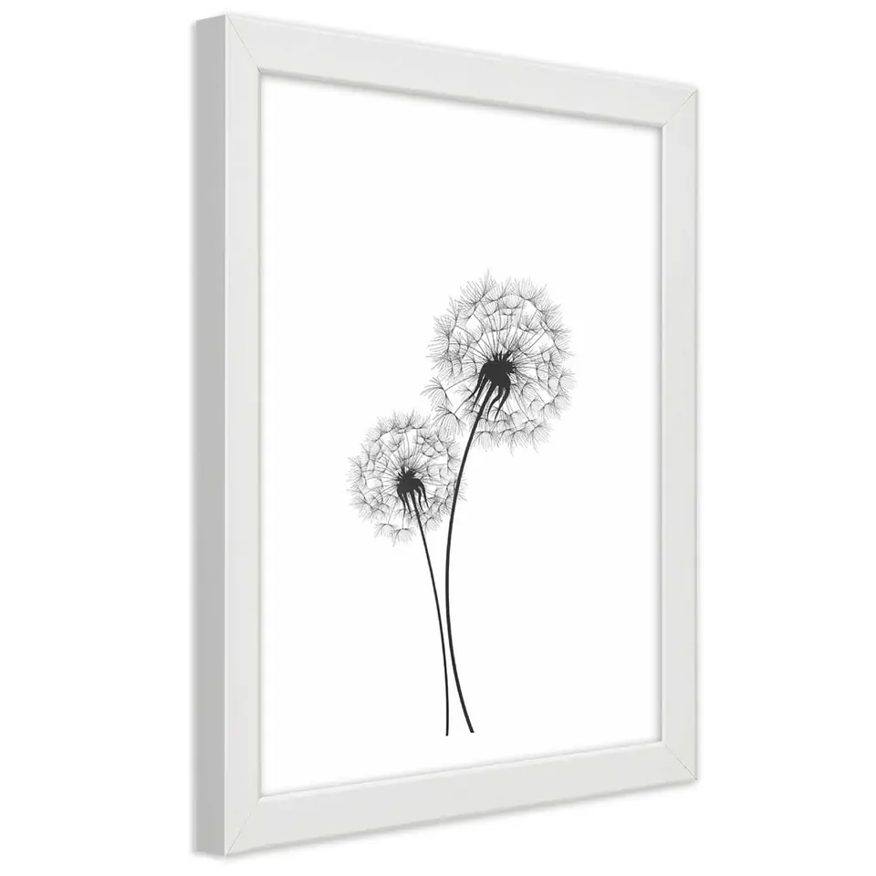 White frame poster, Two dandelions drawn Size 20x30