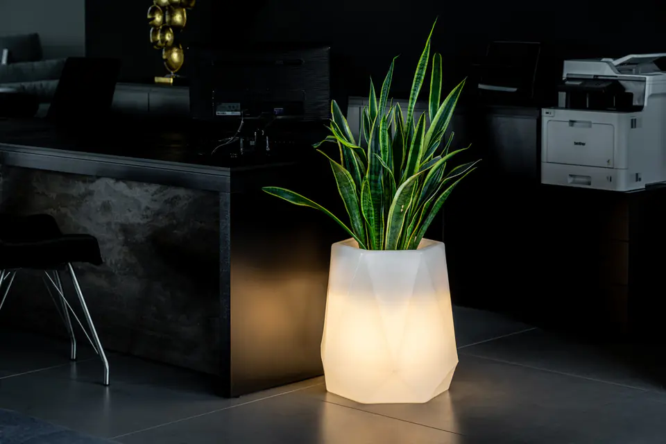 The presented illuminated pot can be used both as a prestigious container for plants in interior decoration or as an innovative and designer floor lamp