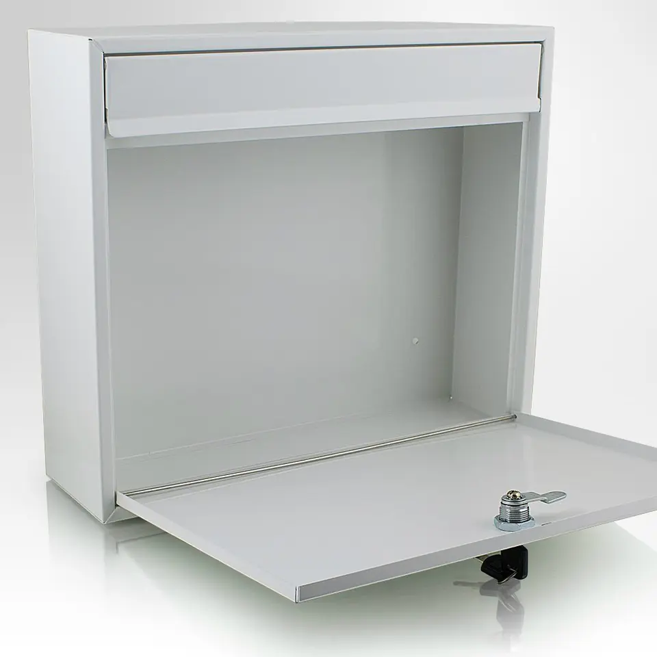 Letterbox designed for external use, for mounting on a fence or wall. It has a slot secured with a flap, protecting the mail from damage. High quality workmanship ensures full security of correspondence and resistance to weather conditions. The kit includes mounting elements and two keys.