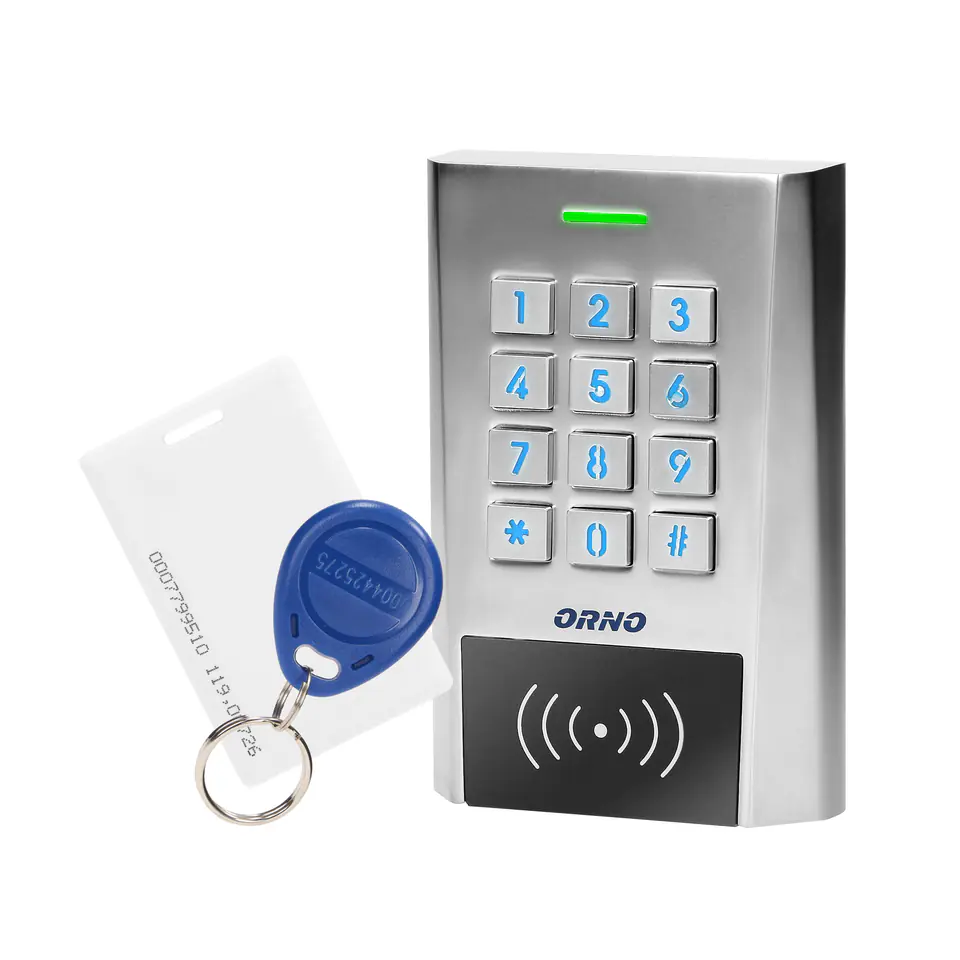 The elegant combination lock in a wide aluminum housing combines the functions of a digital access control keypad with a card reader and proximity keychains. This modern device works with electromagnetic locks, in which an access control system is used. It can also control other electrical or alarm devices. The lock has 2 relay outputs and a reader for proximity cards and key rings. Authorized persons can enter the room or building after reading the card or after entering the access code. The non-volatile EPROM memory remembers stored codes and parameters in memory when the voltage is lost. The keypad of the lock is backlit, so entering codes after dark is not a problem. Its durable housing makes it extremely resistant to changing weather conditions. The lock is suitable for surface mounting. Glowing LEDs indicate the operating status of the encoder.