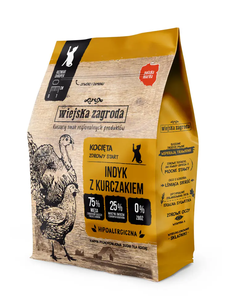 Wiejska Zagroda Indyk z kurczakiem - Sucha karma dla kota - 400g