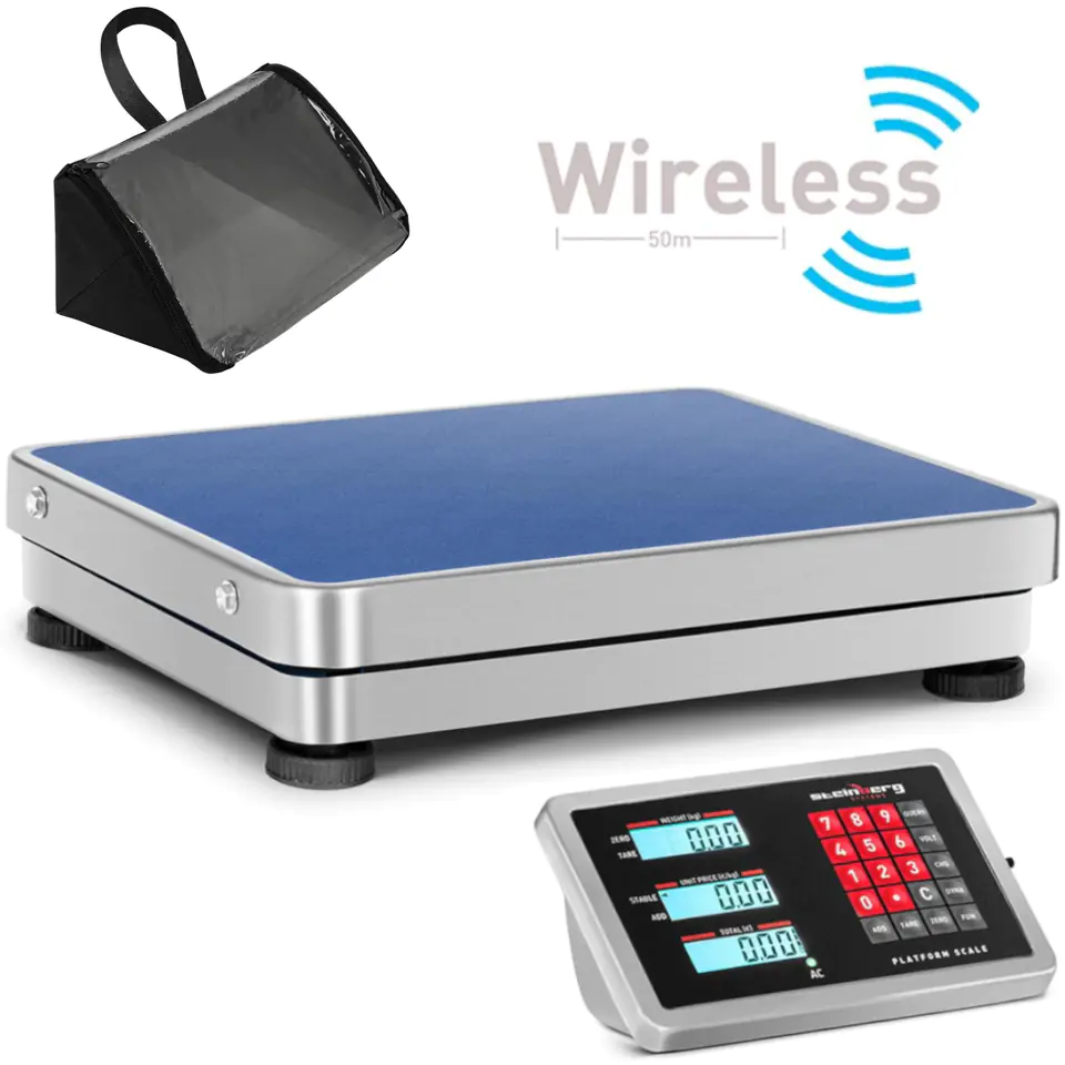 The Steinberg Systems platform scale will work both in professional and private use. The wireless control panel allows for convenient use. The scale has a weighing range of 0.2-150 kg with an accuracy of 0.01 kg. Results are displayed in kg or pounds. The platform has dimensions of 400 x 500 mm. The device weighs, adds the results of several measurements, resets. The balance equipped with a battery lasts for 40 hours. A 1.2m charging cable is included. It can also be used stationary with a connected power supply. The LCD display allows easy reading of measurements.