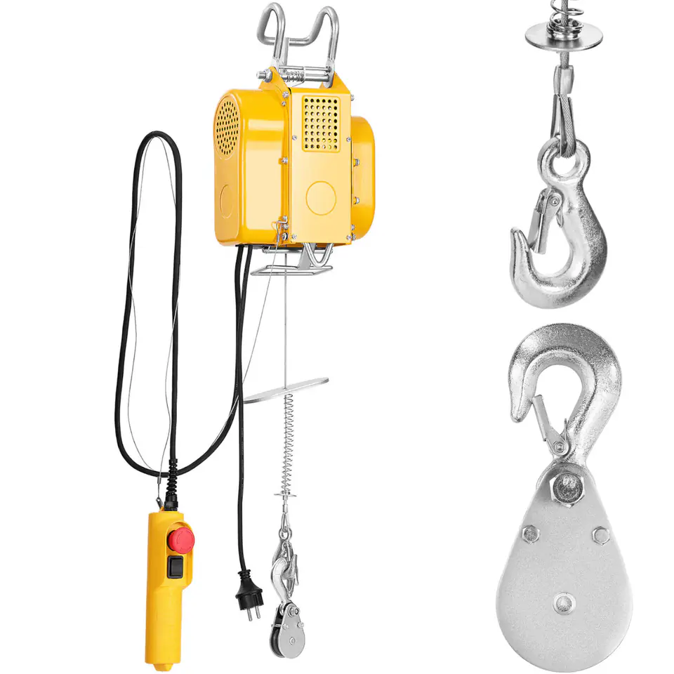 The Steinberg Systems rope winch is suitable for lifting heavy loads in a warehouse, garage or workshop. The 1050 W motor can lift loads up to 300 kg to a height of up to 18 m. The lifting speed is 8 m/min. The durable steel rope is torsional protected and wear-resistant. The inserted blocks reduce the lifting height by half, up to 6 m and the lifting speed is halved, to 4 m / min. At the same time, the load on the winch increases to 600 kg and makes it possible to lift heavy loads. The tensile force is twice as high when the disc is applied. The wired remote control controls the winch, the emergency switch causes the rope to stop. Each of the hooks has a safety lock. The device turns off automatically in the highest and lowest positions. The hoist housing is made of steel, which is resistant to scratches, chips and corrosion. The equipment has IP54 protection class, i.e. protection against the ingress of dirt and water and thermal protection against overload.