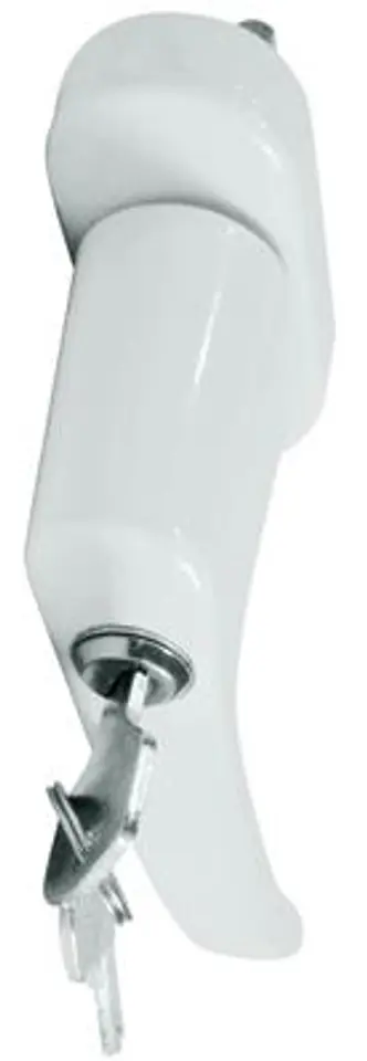 Window handles with lock, set of 2 Special Features: window handle with 2 keys. 90 degree reinforcement Material: Aluminum mounting screws white The set includes 2 handles with 2 sets of 2 keys.