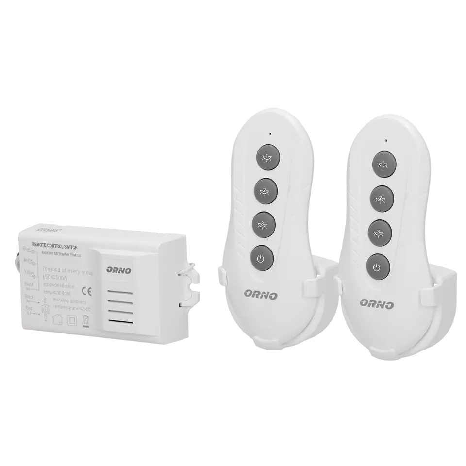 The device is designed for wireless switching on and off of electrical devices inside rooms m.in lighting. Switching on and off is carried out using a remote control (transmitter, 2 pcs. included). The receiver is connected to the lighting just like a normal circuit breaker. It has the ability to simultaneously turn on and off all connected lamps.