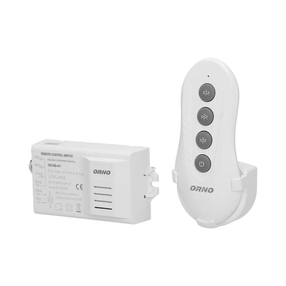 The device is designed for wireless switching on and off of electrical devices inside rooms m.in lighting. Switching on and off is carried out using a remote control (transmitter). The receiver is connected to the lighting just like a normal circuit breaker. It has the ability to simultaneously turn on and off all connected lamps.