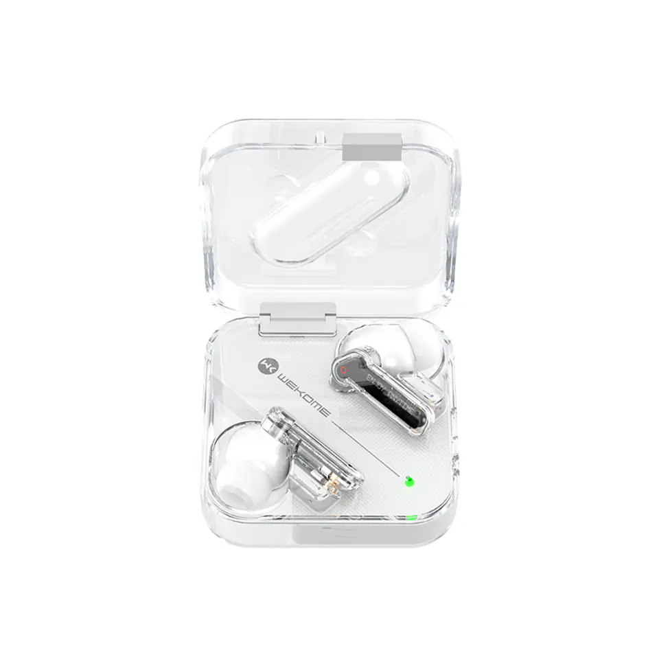 TWS WEKOME V51 Vanguard Series wireless headphones with charging base.