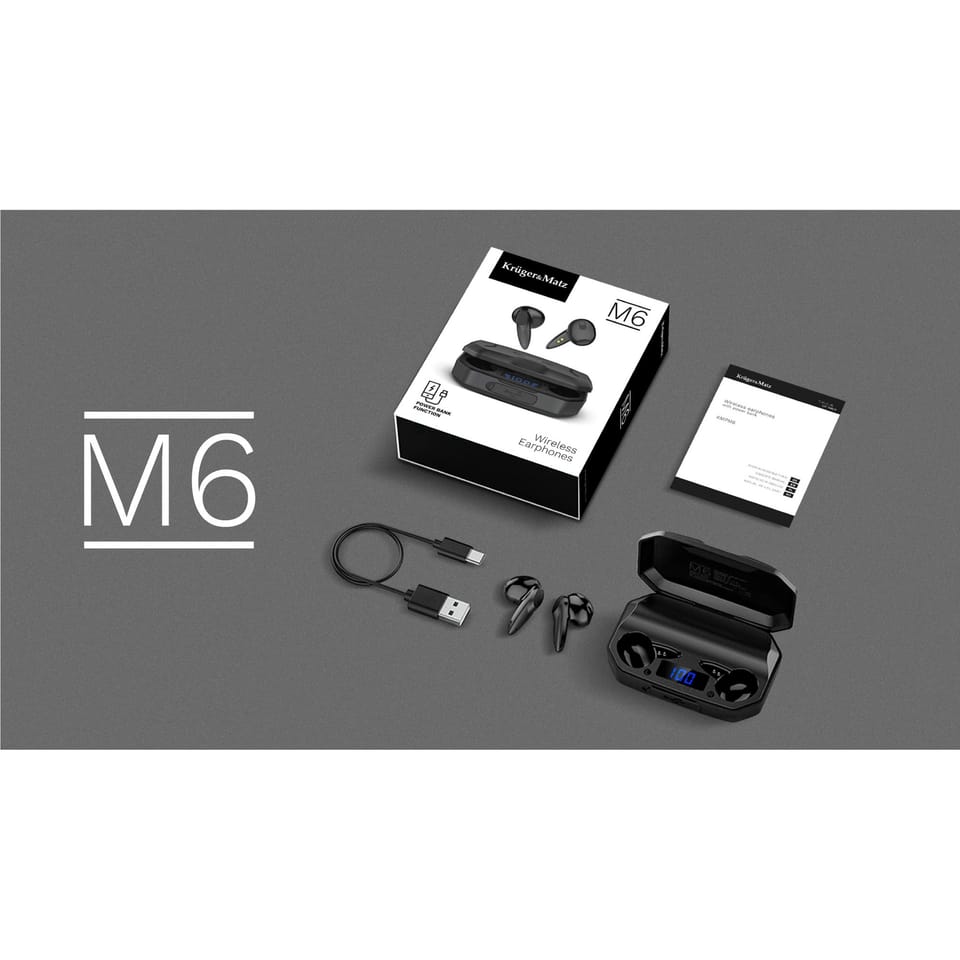 Wireless in-ear headphones with Kruger & Matz M6 power bank - black