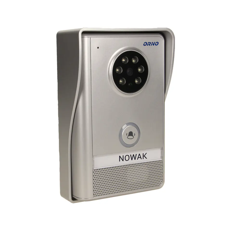 Video camera for the expansion of the SEMIS MEMO video intercom set, color camera, alarm signal in case of removal of the camera, surface mounting, lighting with super bright LEDs allows night vision, power supply from 12V DC power supply (not included) or battery 2 × LR14 (not included).