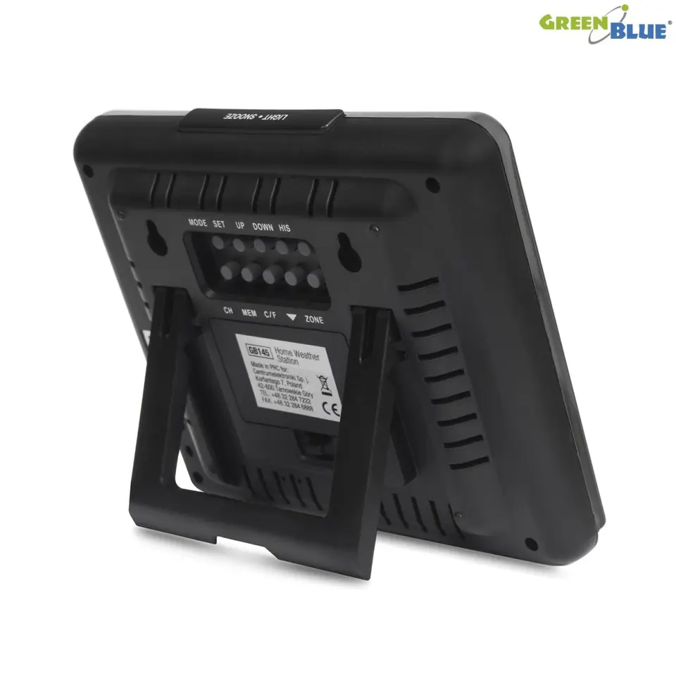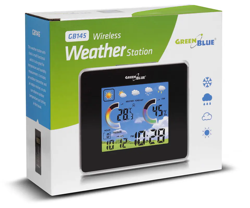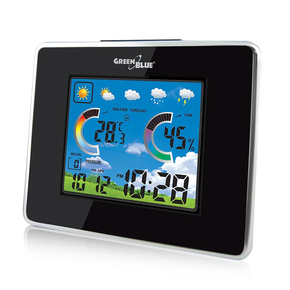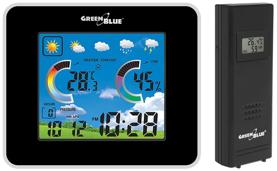 Wireless weather station IN/OUT temperature humidity barmoter USB GreenBlue GB145 black charger