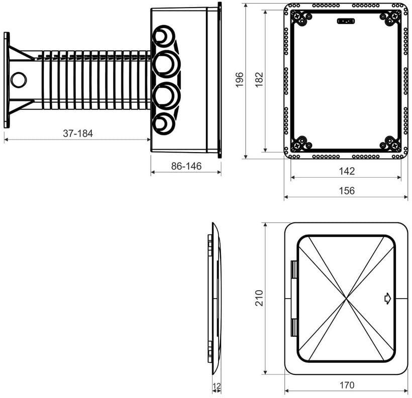 Universal junction box for installing electrical equipment (e.g. electrical equipment, distribution sockets, etc.) on insulated building facades with a thickness of 120 to 330 mmResistive constructionElimination of thermal bridges Complete with the box there is a carrier (tube) and an opening lid with a rubber seal