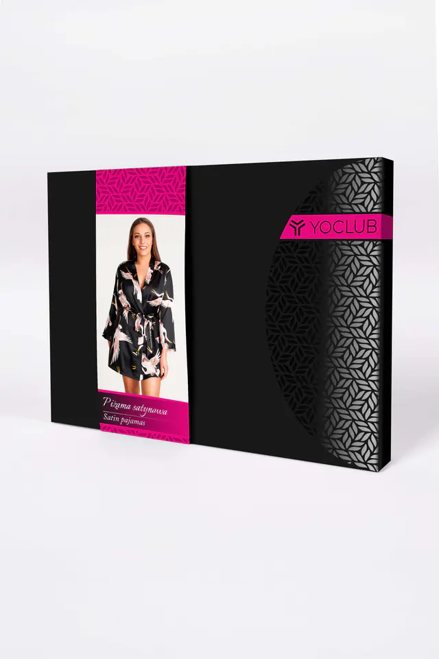 Sexy feminine shirt made of pleasant and delicate satin. T-shirt with narrow straps, V-neckline finished with impressive lace. The whole is decorated with animal print. Length before the knee. Shirt packed in an elegant box. The perfect gift idea.