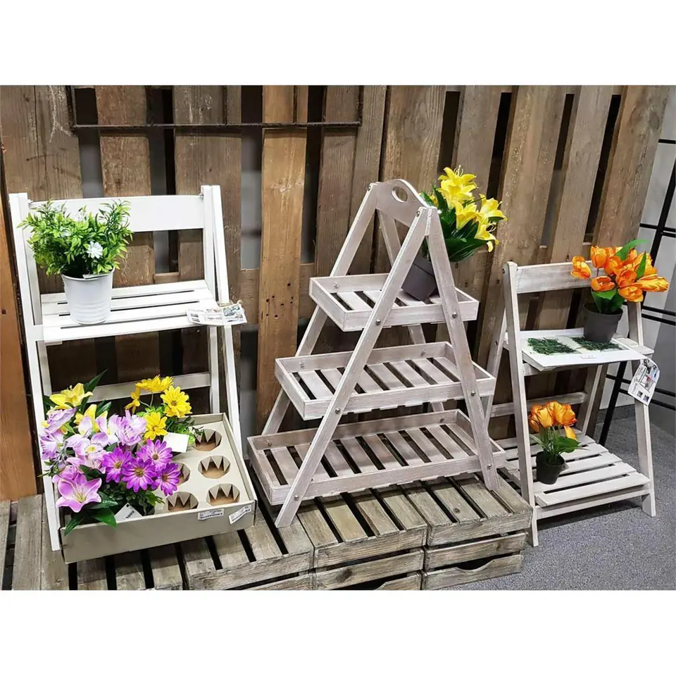 Ladder - the bookcase is a multifunctional piece of furniture. It can be used as a flower stand or a bookcase. It will beautifully display figurines, gadgets, collections. It will add Scandinavian character to the interiors or emphasize the romantic, idyllic atmosphere. It will also work on the terrace and balcony. The bookcase is made of wood, has three levels.