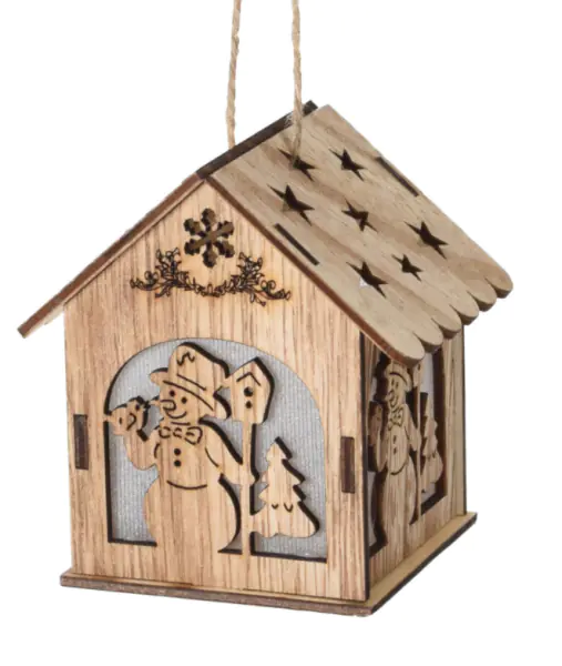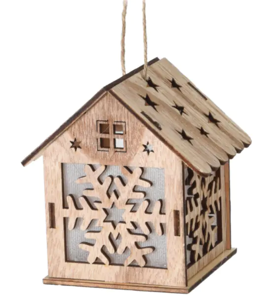 Wooden house decorative Christmas pendant with LED backlight 9x7x9,5cm motif with reindeer