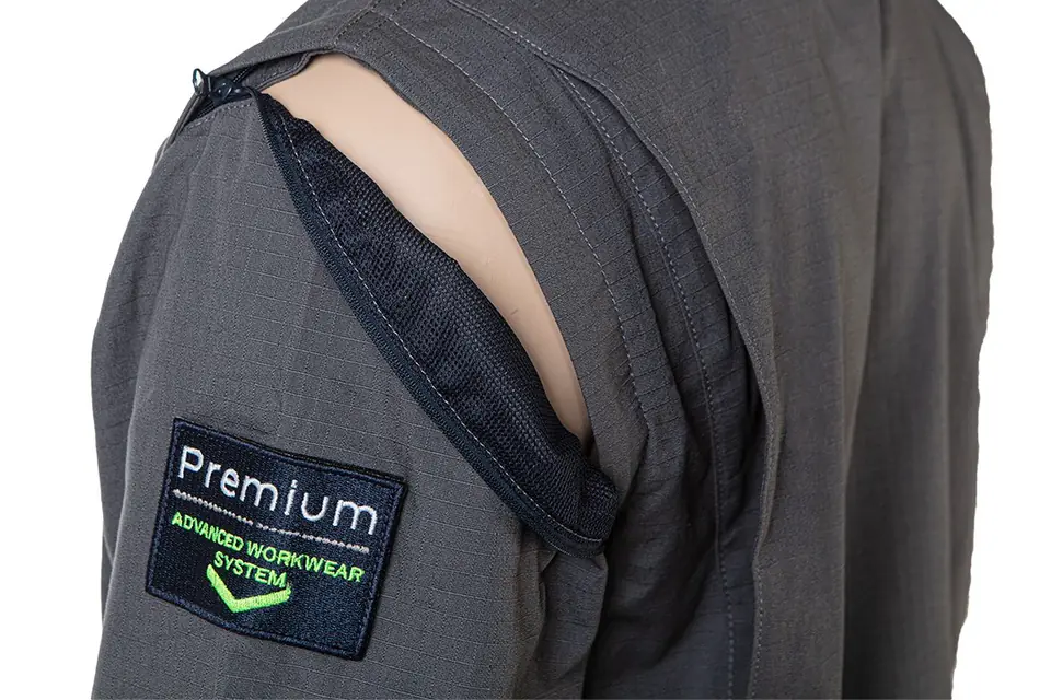 PREMIUM NEO work sweatshirt made of 100% cotton is dedicated to all professional and household work. It is made of ripstop fabric, which blocks further tearing of clothing when it is mechanically damaged. Thanks to the detachable sleeves, the sweatshirt can be turned into a vest. The sweatshirt has a stand-up collar, special overlaps on the back and adjustment of the wrist circumference, thanks to which it provides freedom of movement. To accommodate various tools, the sweatshirt has been equipped with multifunctional pockets written with zippers and press studs. Reflective elements of the sweatshirt ensure visibility and safety at any time of the day and in various weather conditions. They are CE certified for compliance with EN ISO 13688:2013. Available in sizes XS-XXXL.