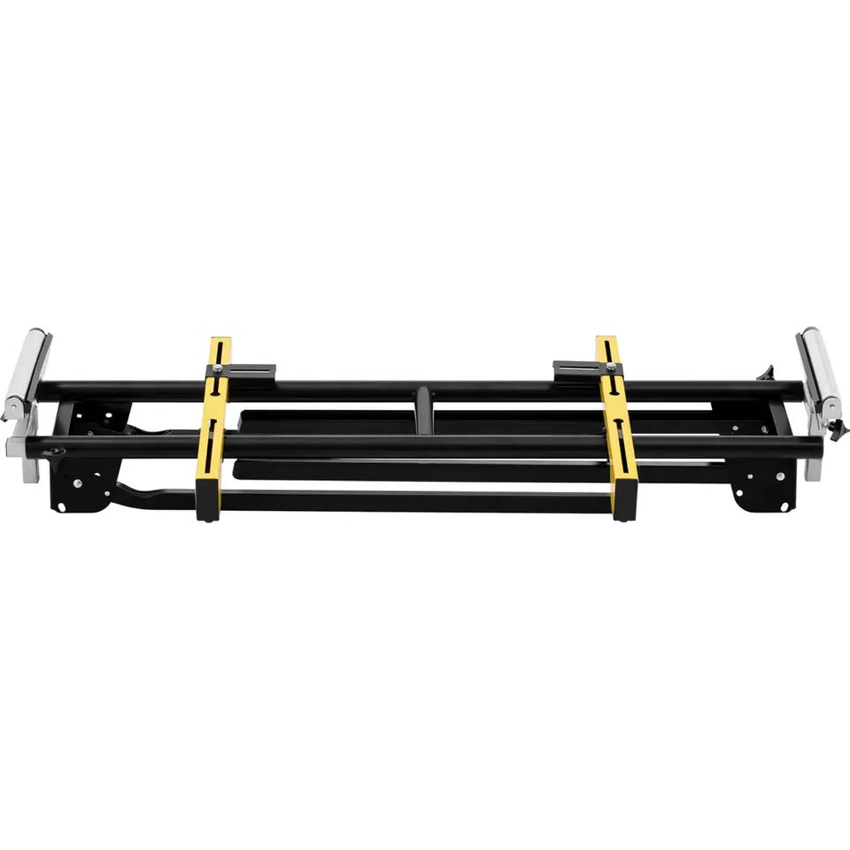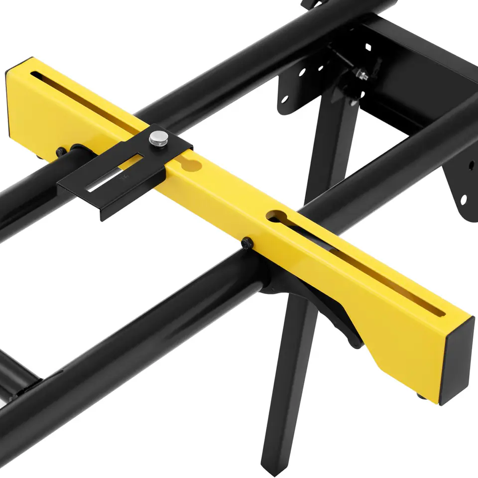The MSW brand slash table will work well in the carpentry, carpentry, renovation and construction, construction industry, etc. The robust construction is made of iron with a load capacity of up to 300 kg. It allows you to attach a saw, slash or other tools. The table is foldable. Its height is 942 mm, and the lateral extension for working with logs is 1340-3000 mm. The working height of the rollers is 955-1193 mm, and the leg spacing is 650 mm.