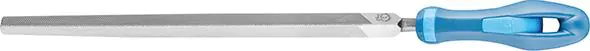 Triangular file with ergonomically shaped 2-component plastic handle, with roll protection and hanging hole