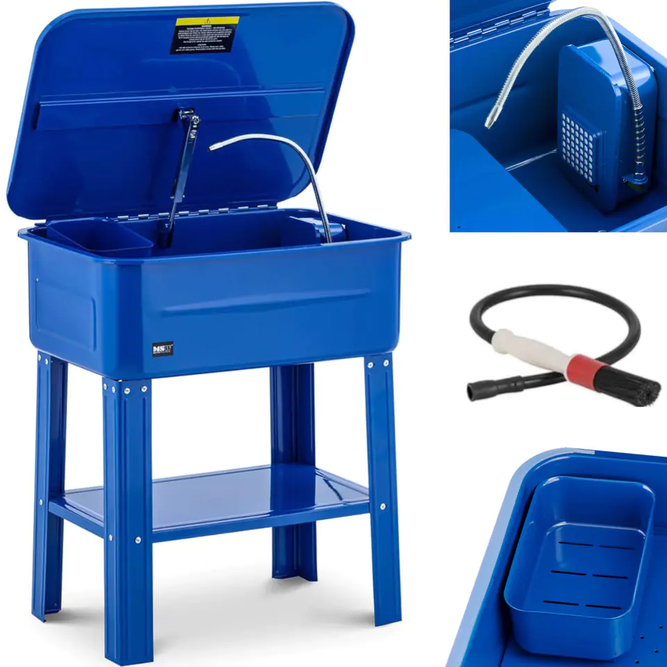 The MSW workshop washer provides the most thorough and effective cleaning of engine parts and tools. The construction of the washer is made of solid steel. The device has a capacity of 75 l and is designed for 45 l of cleaning agent. It should cover the pump inlet. The pump operates with a flow rate of 10-12 l/min, a strong jet allows you to thoroughly clean even surfaces with small cracks. Dirty parts should be put on a removable tray. The ergonomically shaped cleaning brush on the hose allows you to scrub even the smallest nooks and crannies. The device stands on 4 feet and has an insert on which cleaning accessories or engine parts are placed. The lid locks automatically when opened, allowing safe operation without restrictions.