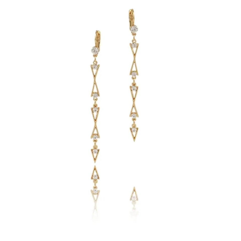 Earrings are a perfect gift idea and a complement to any stylization. Modern earrings with Swarovski crystals. Length 8cm, width 0.5cm. Gold-plated earrings.