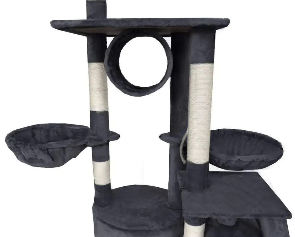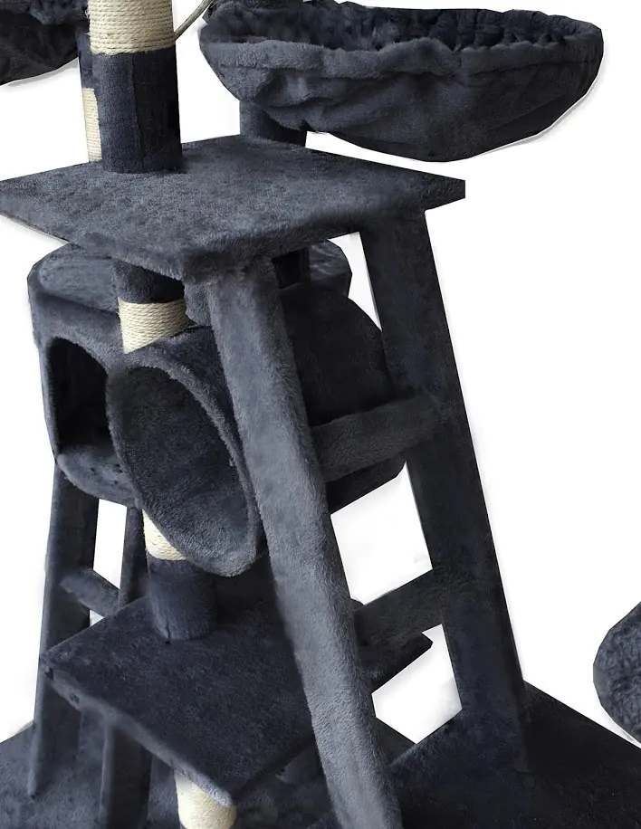 Your cat is full of energy and has nowhere to use it? Or maybe you have two cats that have to share one small scratching post? Our XXL scratching post will be the perfect scratching post for your pet! Thanks to the extensive design, many options for aging and playing, your fluffy friend will have plenty of space just for himself. The scratching post has a lot of parts, so it is a combination of many attractions.