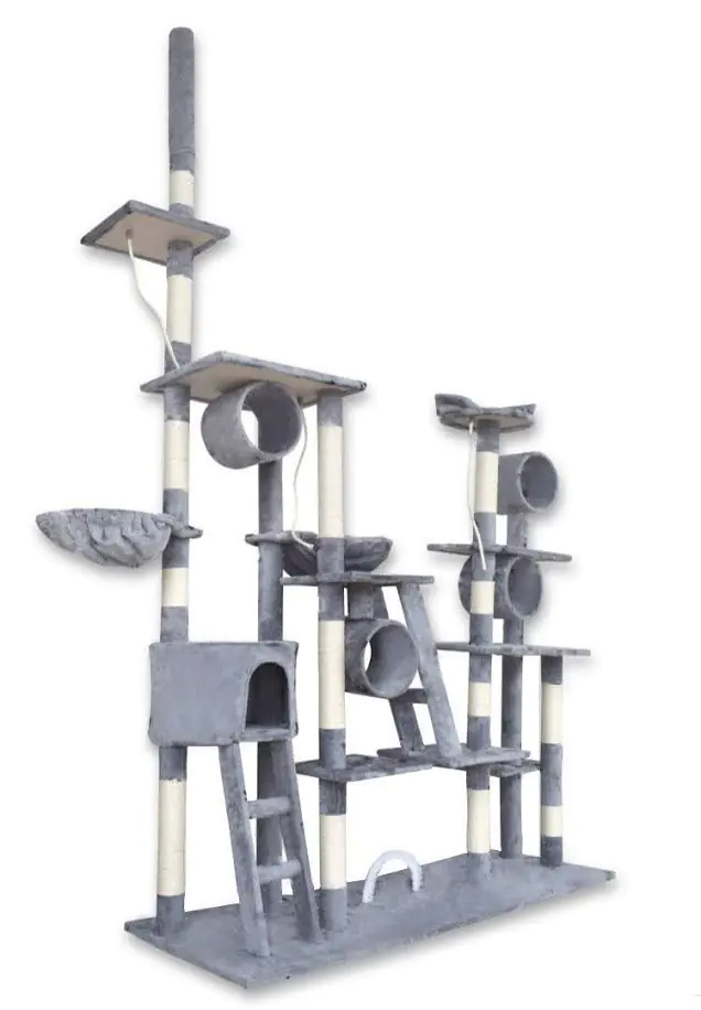 Your cat is full of energy and has nowhere to use it? Or maybe you have two cats that have to share one small scratching post? Our XXL scratching post will be the perfect scratching post for your pet! Thanks to the extensive design, many options for aging and playing, your fluffy friend will have plenty of space just for himself. The scratching post has a lot of parts, so it is a combination of many attractions. It is possible to attach the scratching post to the ceiling, which makes the whole structure more stable.