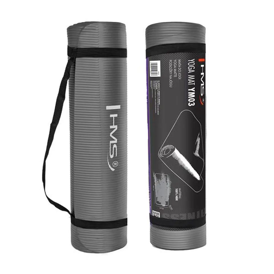 YM03 HMS is a yoga mat made of thick, perfectly cushioning NBR material. It is a type of synthetic rubber. This durable material ensures perfect grip. Thanks to this, the mat is stable and does not slip on the ground during training. The HMS product is also a high comfort of exercise, because NBR plastic guarantees excellent insulation. Remember that the thicker the mat, the greater the comfort for our body and joints. So it's worth choosing the YM03 HMS. The mat is also high flexibility and low weight. The material from which it is made has a low shape memory, thanks to which it quickly aligns. YM03 can be used during yoga, aerobics and fitness classes. The product is also ideal for the beach. Storing and transporting the mat is facilitated by compression straps. Specification: Color: grey Dimensions: 183 cm x 61 cm Thickness: 10 mm Material: NBR Notes: Warranty 24 months