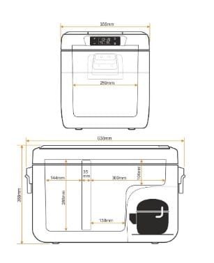 | Additional information: | Climate class N | T | SN | ST, 2 compartments: right 15 L, left: 10 L, AC/DC adapter with 100-240V POWER CABLE (EU/UK), 2 cold rooms with separate Dual-Zone temperature control, app operation |