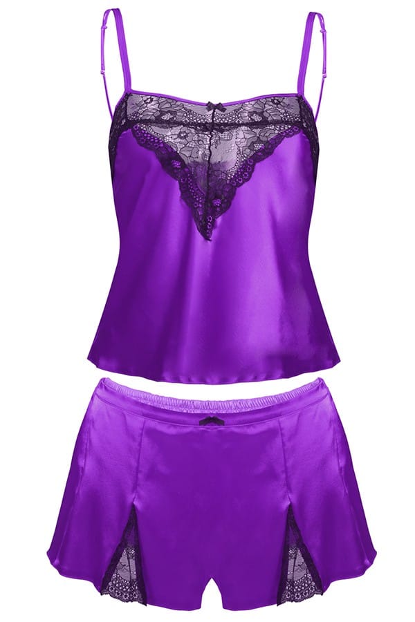 SATYNOWY KOMPLECIK W KTÓRY SKŁAD WCHODZI KOSZULKA ORAZ SPODENKI. GÓRĘ KOSZULKI ZDOBI DELIKATNA KORONKA NA DEKOLCIE. RAMIĄCZKA CIENKIE I REGULOWANE. DOSTĘPNE WERSJE KOLORYSTYCZNE:SATYNA JASNY ECRU Z ECRU KORONKĄ, RESZTA KOLORÓW SATYNY Z CZARNĄ KORONKĄ