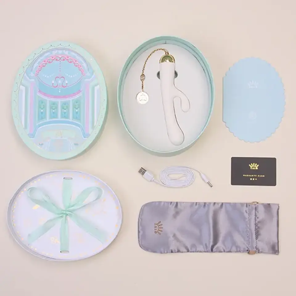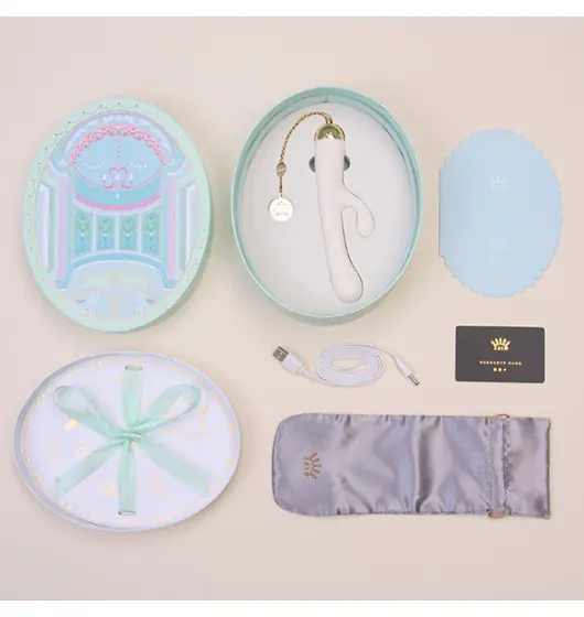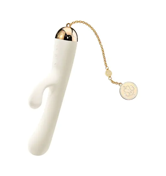 Ichigo Rabbit Vibrator is a rabbit vibrator, distinguished by technological advancement and exclusive design. This sex toy provides double stimulation - the G-spot and the clitoris. Intense vibrations are quiet. 8 adjustable vibration modes, 4 theme modes, 3 custom modes, music tracking mode, flirt mode give you great possibilities. Ichigo Rabbit has a built-in Bluetooth module that connects to the application on your smartphone with a single button. From the application level it is possible to control stimulation modes and their power. Luxurious design is the distinguishing feature of this vibrator. The highest quality silicone (Dow Corning), from which Ichigo is made, resembles the touch of the skin and provides delicacy. The metal elements in the vibrator are gilded (18 ct gold). Attached to the upper part is a tasteful chain with two pendants. Hand-enamelled patterns are made with attention to every detail. The whole looks modern and elegant. Ichigo Rabbit is available in four color variants (strawberry pink, vanilla white, blueberry purple, melon green). The device is charged using a USB cable.