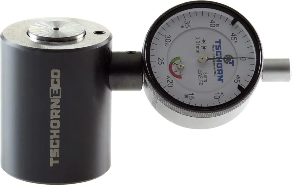 Material: hardened steel, with spring-loaded measuring surface.