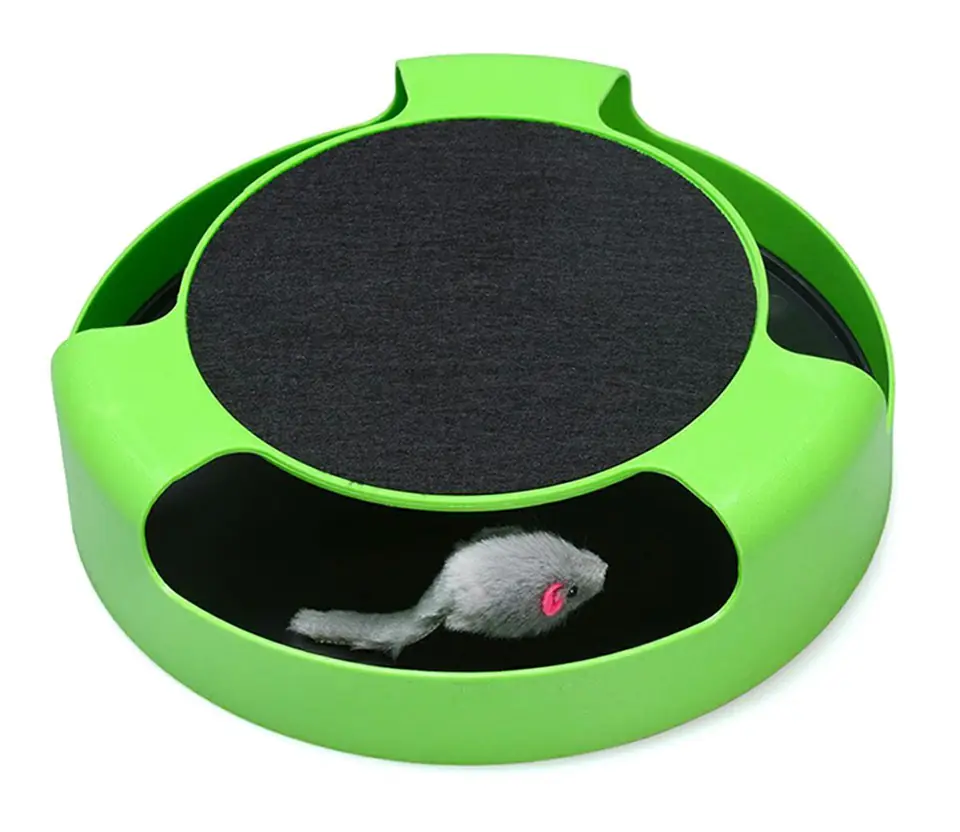 A wonderful, interactive cat toy - a running mouse. An extremely simple principle of operation - the mouse, after being hit by a cat, is set in motion, and the cat again tries to catch it. At the top of the toy there is also an additional scratching post. Equipped with as many as 3 holes, which makes the cat's "hunting" even more attractive. It provides a lot of joy for long hours for our pet (and a moment of respite for the owner of the :)