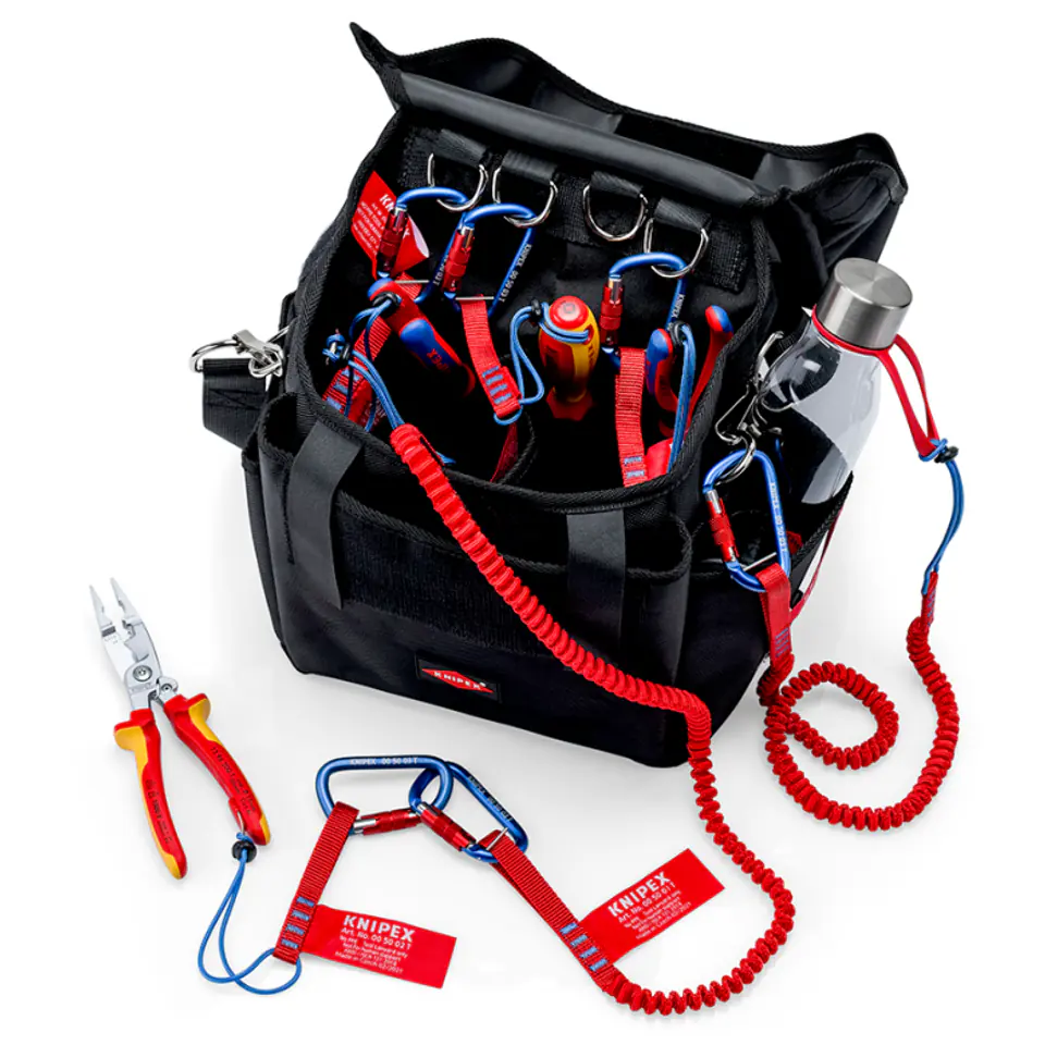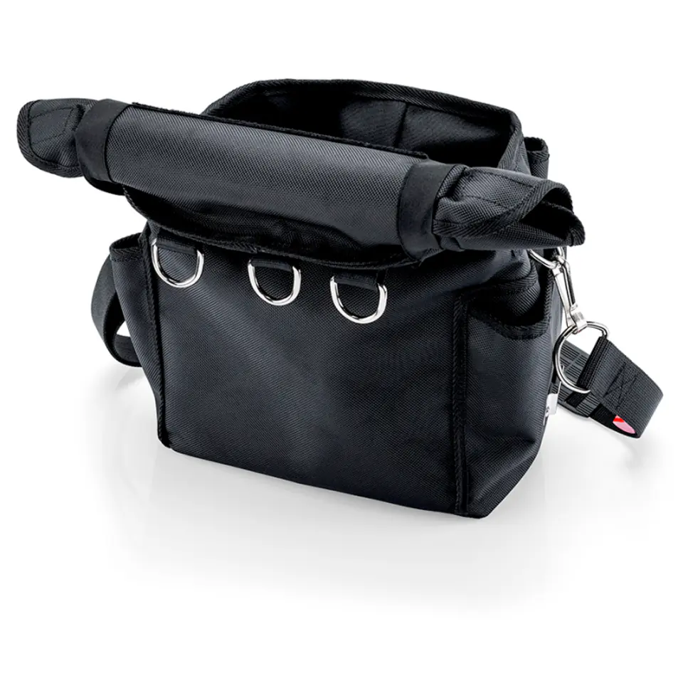 - Dwa zewnętrzne metalowe klipsy mocujące do np. elektronarzędzi akumulatorowych i 18 wewnętrznych elastycznych pętli Zamykana i zwijana pokrywa z powierzchnią na rzepy do indywidualnego oznakowania Afneembare schouderriem voor comfortabel transport Wytrzymałe włókna syntetyczne, odporne na zabrudzenia i zachlapania dzięki wnętrzu wykonanemu z gumy Wzmocniona tworzywem sztucznym podstawa z pięcioma gumowymi nóżkami Do pracy na wysokościach, głębokościach lub na linach: podczas np. wspinaczki przemysłowej, pracy w szybach, dla służb ratowniczych, przy pielęgnacji drzew, renowacji mostów, w elektrowniach wiatrowych lub na morzu Pojemność ok. 12 litrów; wymiary zewnętrzne wys. x szer. x gł. ok. 370 x 250 x 150 mm, ciężar własny ok. 1400 g Bezpieczeństwo potwierdzone niezależnym certyfikatem: bezpieczne obciążenie do ok. 10 kg NO PPE = brak środków ochrony osobistej