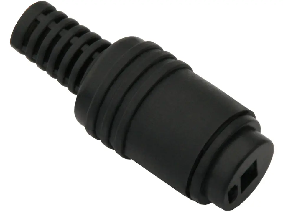 Skręcane, proste gniazdo głośnikowe w kolorze czarnym.