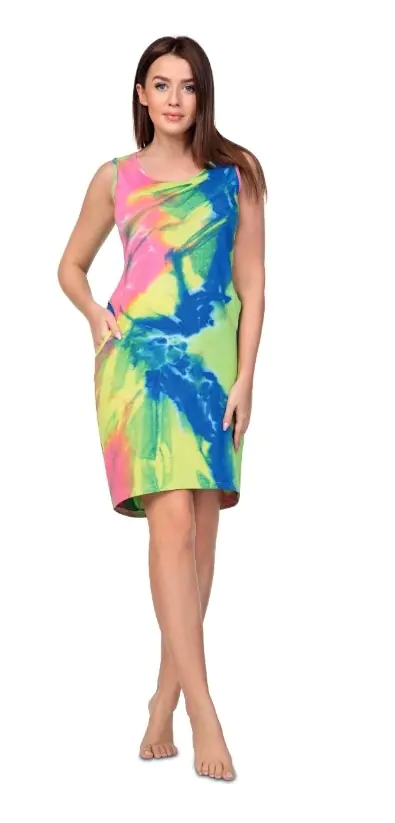 Koszula damska nocna idealna na upalne dni. Na szerokich ramiączkach, długość przed kolano. Kieszenie na wysokości bioder.