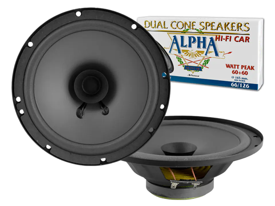 Głośniki samochodowe PHONOCAR 66126, 165mm, ALPHA dual cone, 60W.