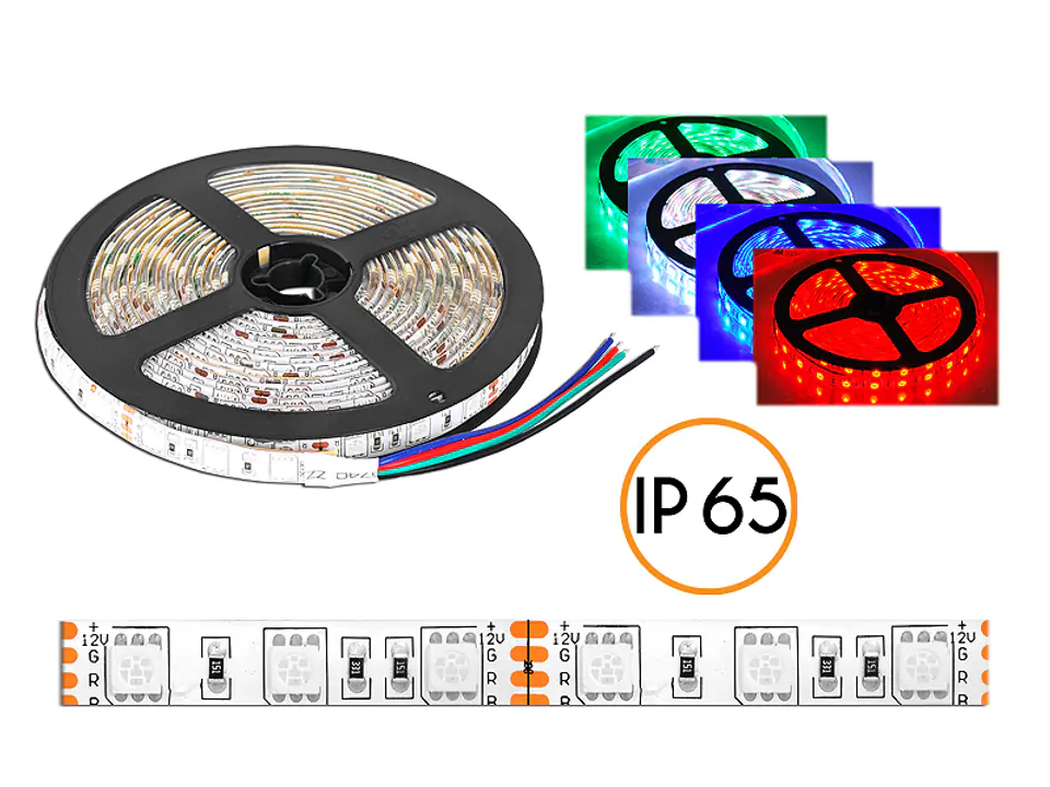 PS Sznur diodowy ECO, wodoodporny, RGB, 300diod SMD5050, 5m, białe podłoże.