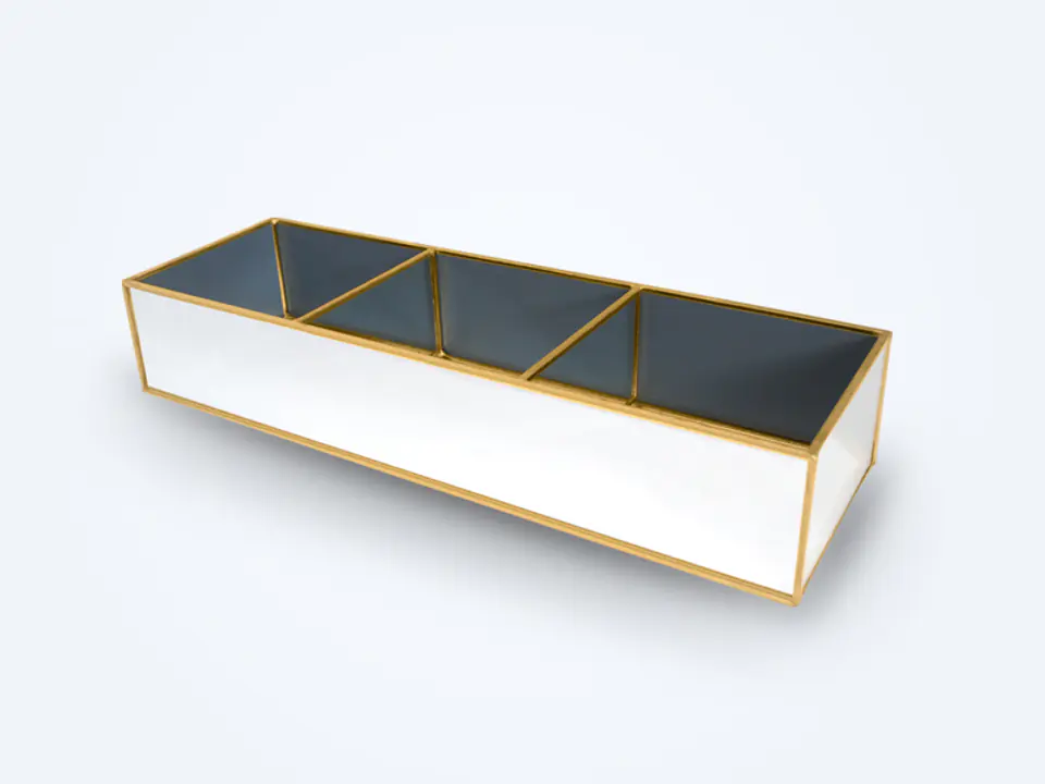 Pojemnik CANDY to wyjątkowy przedmiot, który nie tylko ładnie wygląda, ale również jest niesamowicie praktyczny w organizowaniu przestrzeni. Dzięki niemu możesz utrzymać ład i porządek a jednocześnie mieć szybki dostęp do swoich ulubionych rzeczy, których już nie musisz chować po szufladach. Trzy przegródki pozwolą na harmonijne rozstawienie przedmiotów, które zawsze chcesz mieć pod ręką.