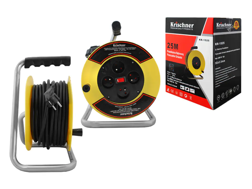 PS Przedłużacz bębnowy Krischner KR-1524 izol. guma 4x2p+Z, 16A, 3x2,5mm 25m.
